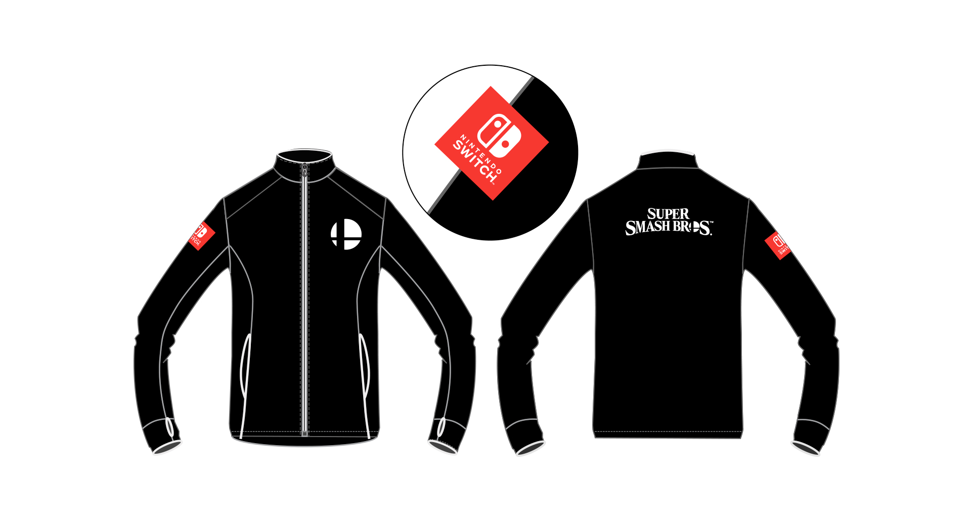 Line Drawings for black Nintendo team jackets promoting the launch of Smash Bros. Ultimate at E3 and PAX West.
