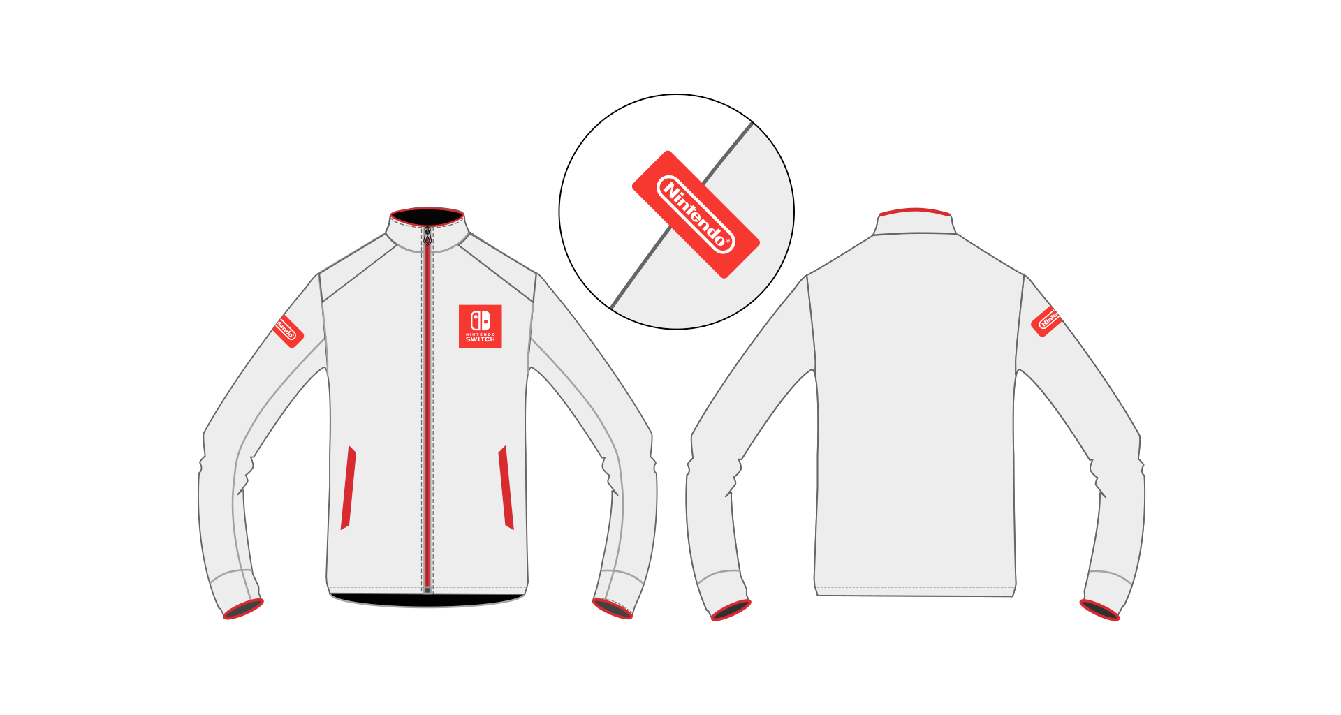 Line Drawings for white Nintendo team jackets promoting the Nintendo Switch at E3 and PAX West.