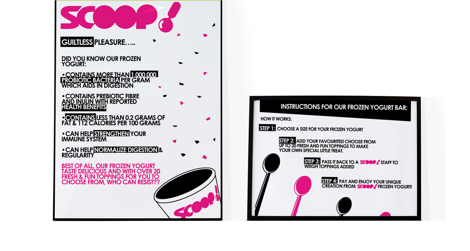 Two Poster Menu designs for Scoop Frozen Yogurt.