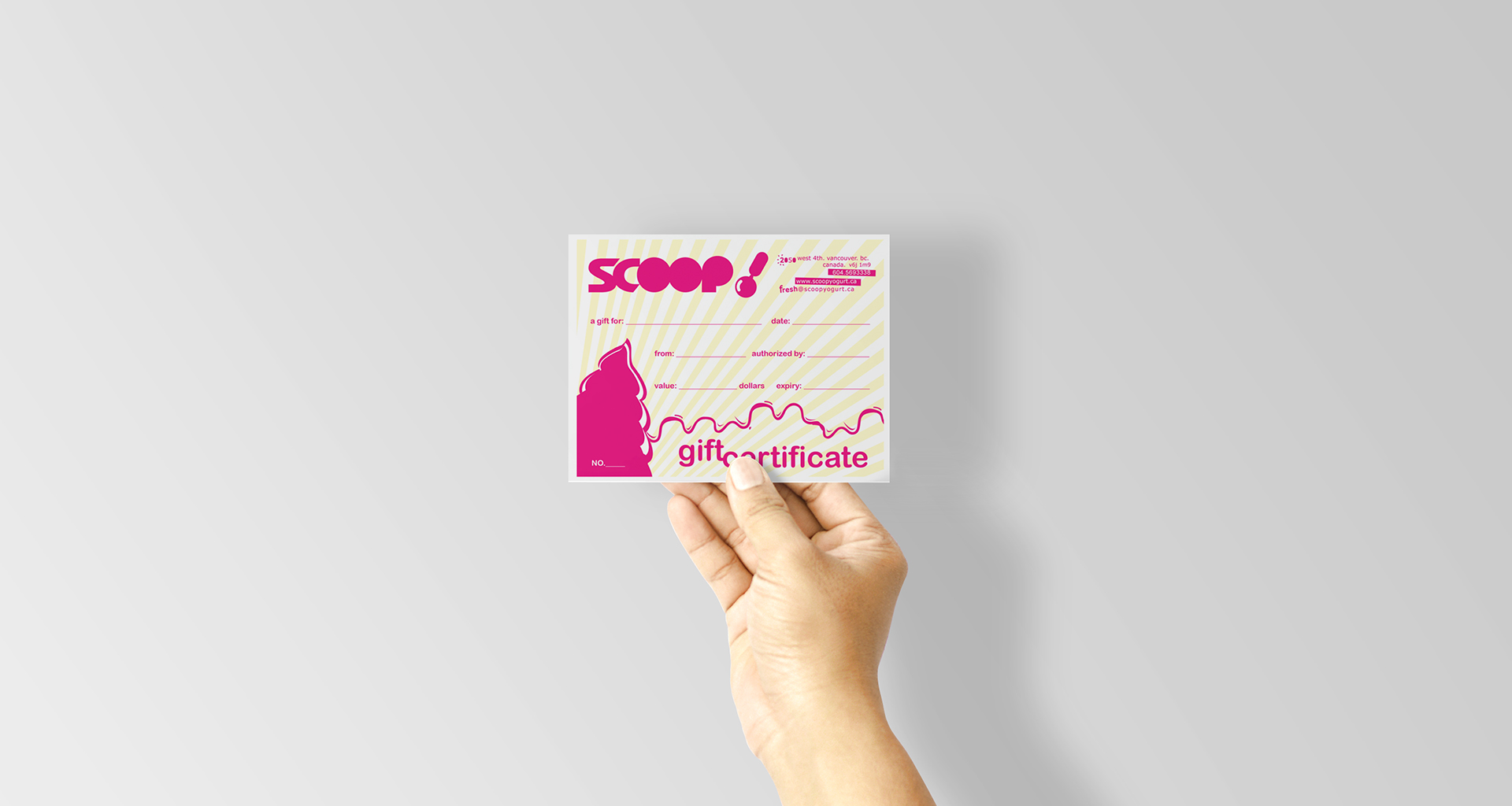Printed Gift Certificates for Scoop Frozen Yogurt.