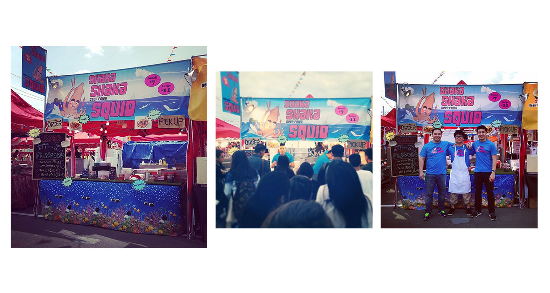 Shaka Shaka Squid was a freelance opportunity I was approached with by Alex and Wilhelm, the owners of the start up food stand. They came to me for help after deciding to invest in setting up a BBQ squid stand at the Richmond Summer Nightmarket held every summer in British Columbia.
