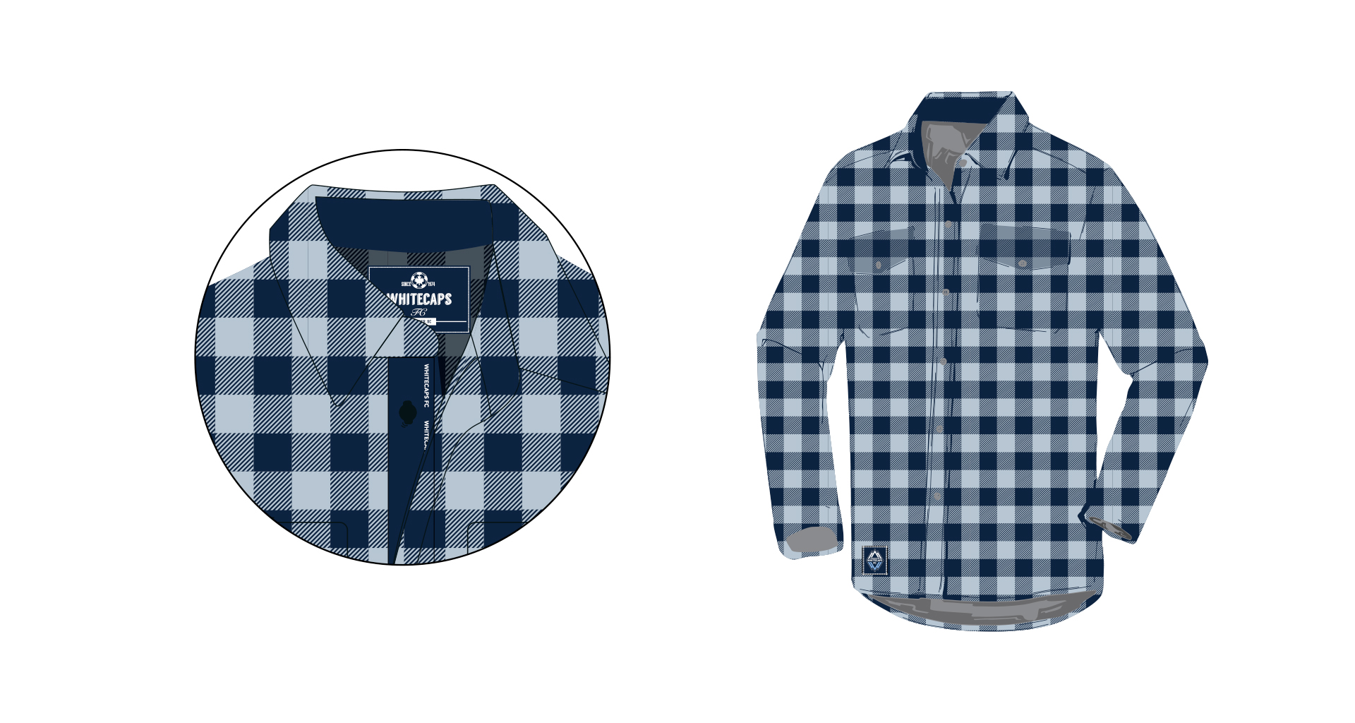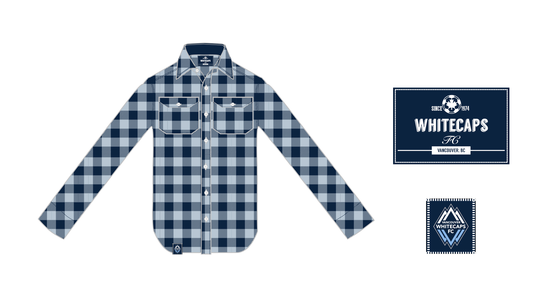 The project involved creating a new apparel piece for the Whitecaps store that was not football/soccer related but would serve both as promotional apparel and a functional jacket that fans could wear on cold days watching their team at the stadium. The result was a branded fleece lumberjack tartan jacket in the Whitecaps blue colorway. The choice of using a lumberjack tartan pattern on a fleece jacket also promoted a sense of canadiana for the fans of the club.